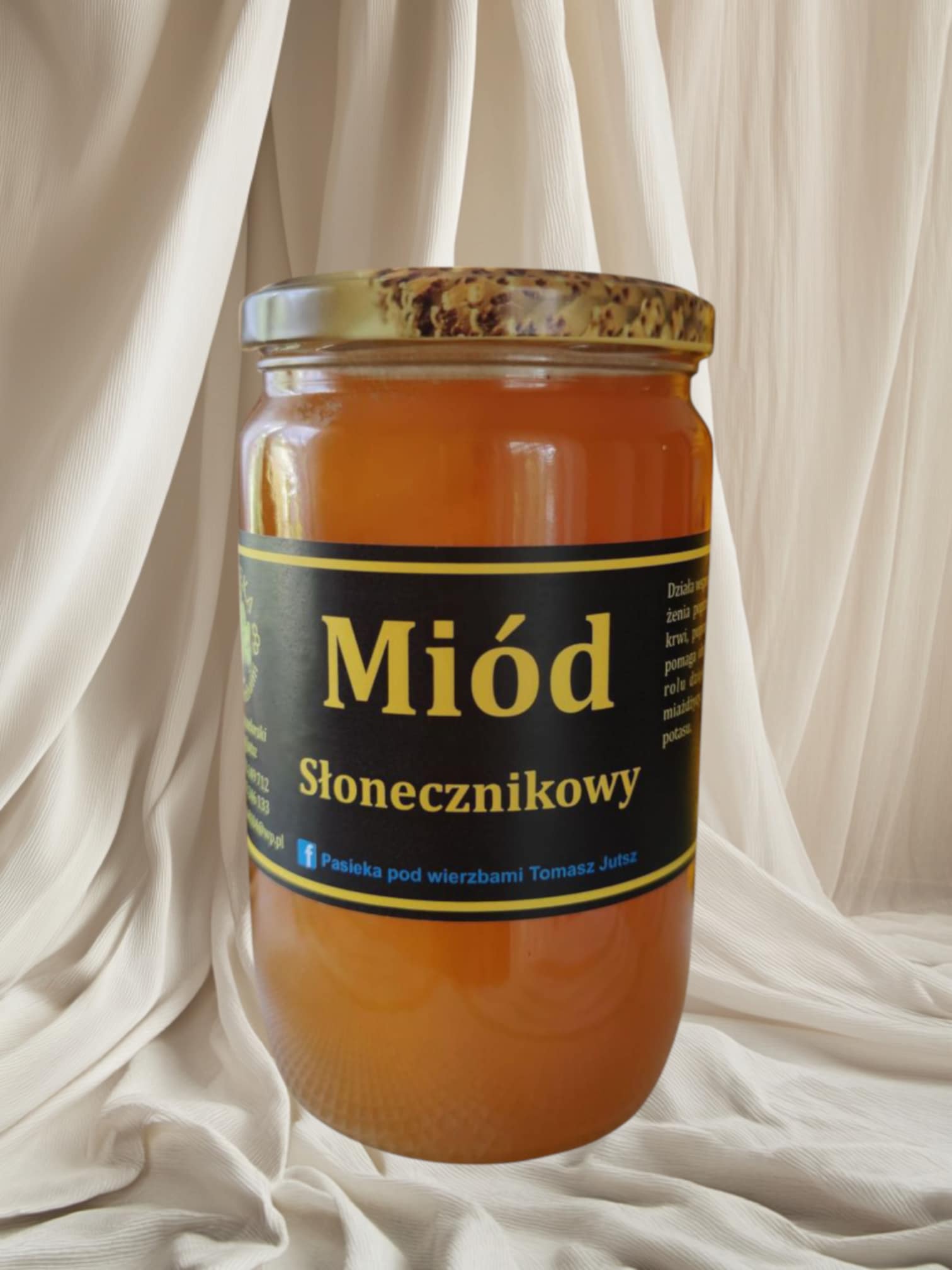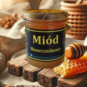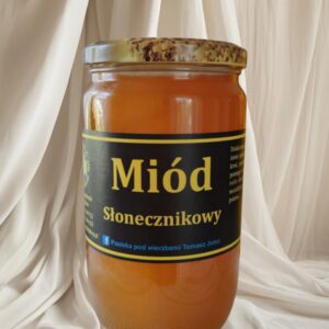Miód słonecznikowy to jeden z mniej popularnych, ale niezwykle wartościowych gatunków miodu, pozyskiwany z nektaru kwiatów słonecznika zwyczajnego (Helianthus annuus). Miód ten ma intensywnie złotą lub jasnożółtą barwę, która z czasem może zmieniać się w bardziej bursztynową, szczególnie po krystalizacji. Krystalizuje się stosunkowo szybko, tworząc drobnoziarnistą strukturę. Po procesie krystalizacji staje się bardziej kremowy.Charakteryzuje się delikatnym, smakiem z nutami owocowymi, które sprawiają, że jest przyjemny i łagodny w odbiorze. Ma subtelny, kwiatowy zapach, przypominający świeże kwiaty słonecznika, co nadaje mu wyjątkowości.