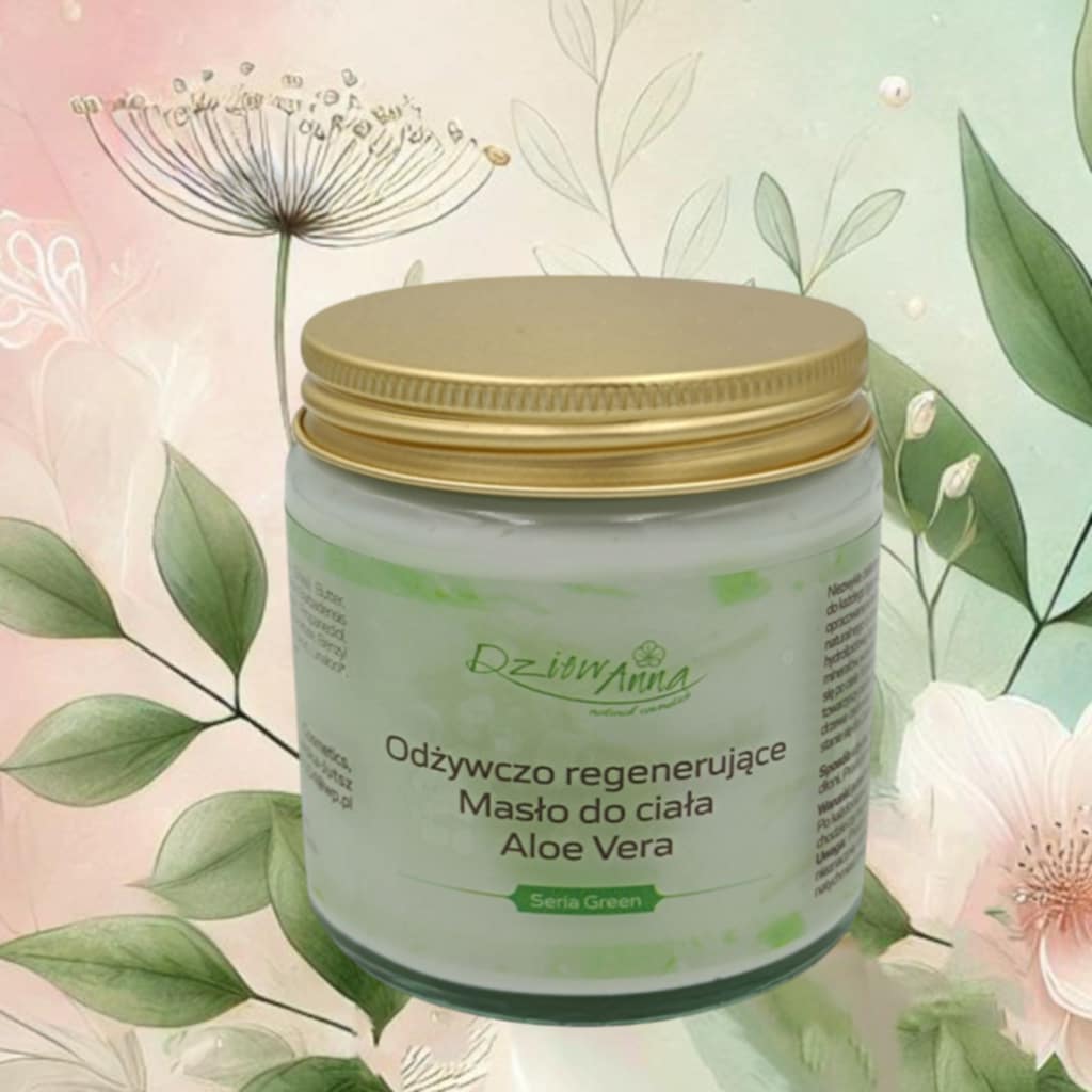 Niezwykle delikatne a zarazem odżywcze masło, które rozpieszcza i otula nasze zmysły i ciało. Masło Aloe Vera przeznaczone jest do każdego typu skóry, a w szczególności suchej i odwodnionej, która wymaga regeneracji i odżywienia. Jego formuła została opracowana w taki sposób aby zapewnić naszej skórze długotrwałe nawilżenie i odżywienie. Zawiera składniki pochodzenia naturalnego o działaniu nawilżającym i poprawiającym zdolność skóry do zatrzymywania wilgoci,  wzmacniającym barierę hydrolipidową i łagodzącym m.in., pantenol, propanodiol, ekstrakt aloesowy, bogactwo nienasyconych kwasów tłuszczowych, minerałów, wosków oraz witamin A i E pochodzących z użytych olejów i maseł. Kremowa konsystencja sprawia, że łatwo rozprowadza się je po ciele. Tej bogatej i wyjątkowej formule towarzyszy piękny delikatny aromat  łączący w sobie nuty zapachowe zielonej mandarynki, białej herbaty, liści aloesowych oraz drzewa cedrowego przywodzący na myśl świeżość lasów deszczowych. Dzięki temu codzienne stosowanie tego balsamu stanie się dla Ciebie luksusowym rytuałem pielęgnacyjnym, który przywróci i nada Twojej skórze utracony blask i miękkość.