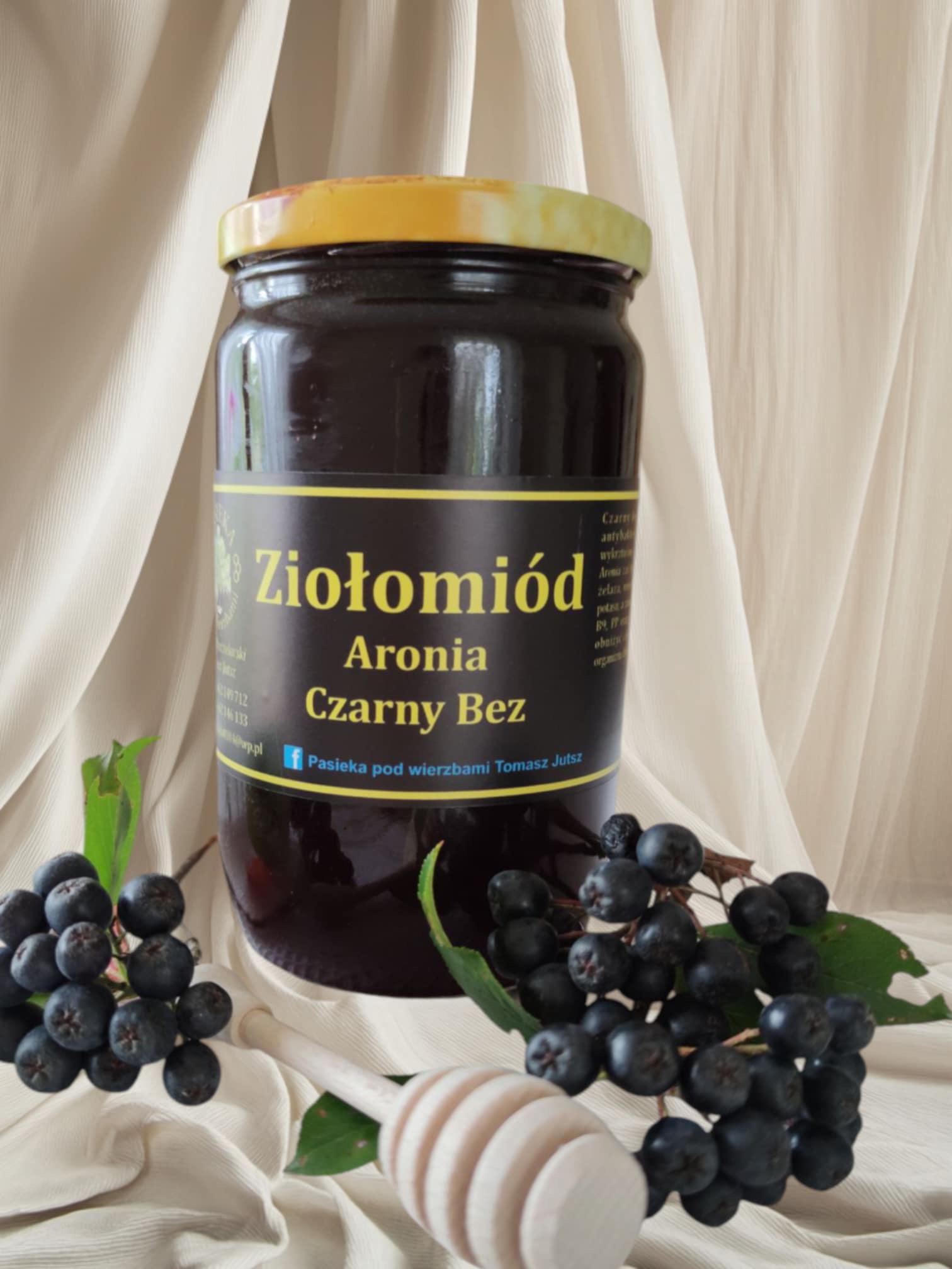 Ziołomiód z czarnego bzu i aronii to unikalny produkt, który łączy zdrowotne właściwości dwóch roślin – czarnego bzu i aronii – z dobrodziejstwami miodu pszczelego. Produkt ten jest ceniony za swoje działanie wspomagające odporność organizmu, a także za wszechstronne właściwości zdrowotne, które mogą poprawić ogólne samopoczucie, wspierać układ sercowo-naczyniowy oraz działać przeciwzapalnie.